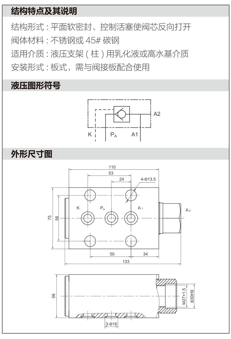 液控单向阀KDF1D(FDYA125/50)
